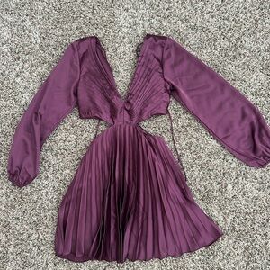 Elegant Purple Pleated Cut Out Dress