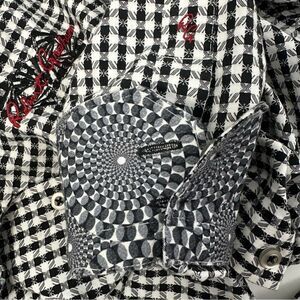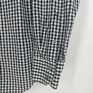 Black and white plaid printed button down shirt.