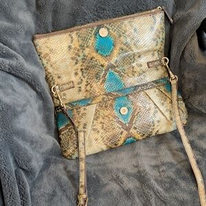 Gianni Bini foldover clutch bag in a brown and blue snake print