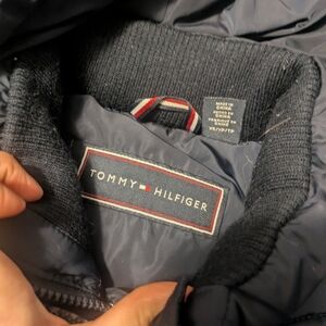 Super cute navy blue long slimmer fit winter jacket by Tommy Hilfiger.