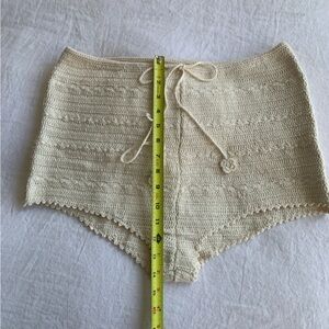 NWT Doen Lia Cotton Crochet Hand Knitted Knit Drawstring Shorts Cream
