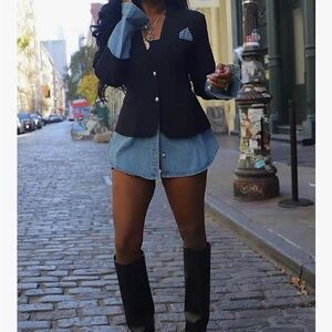 Women's Black and Blue Blazer with Denim Accents