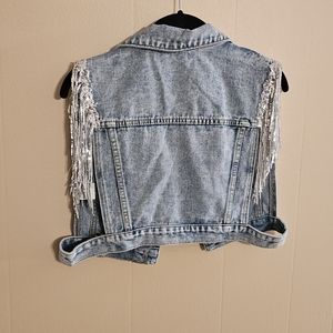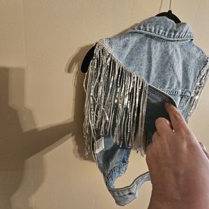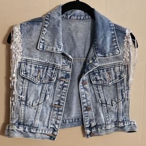 SweatyRocks XS Over Sized Ladies Festival Western Denim Fringe Crop Vest