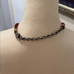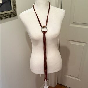 Elevate your style with this elegant braided leather necklace. Featuring a striking ring accent, this piece adds a touch of sophistication to any outfit. Perfect for any occasion.