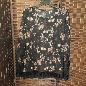 EUC Cato Chic Floral Women's Blouse in Black and Pink with Velvet Details