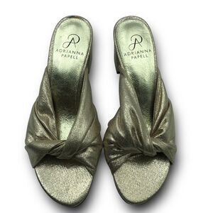 Adrianna Papell Gold Twist Front Summer Vacation Block Heels Open Toe Size 7.5M