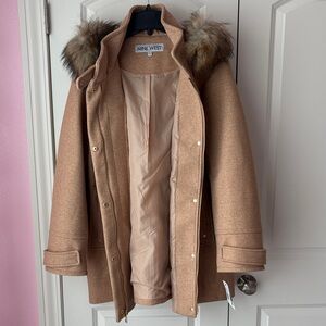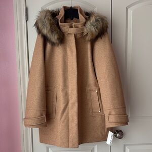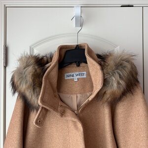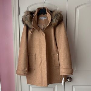 Nine West Tan Coat with Faux Fur Hood Size XXL