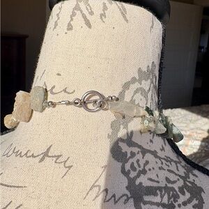 Elegant necklace featuring natural stone beads in earthy tones. A few of the soft stones are split still exquisite.