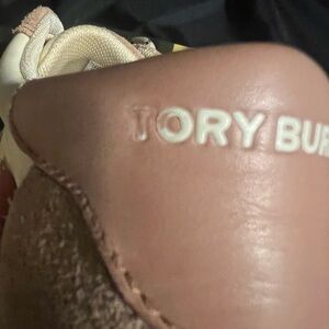 Elegant sneakers with blush and cream tones. Features iconic Tory Burch logo.