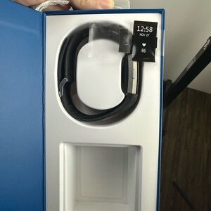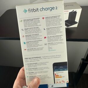Enhance your fitness tracking with the Fitbit Charge 2. Includes a sleek black charging stand for convenience.