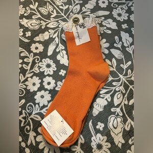 Free People Orange Lace Trim Socks
