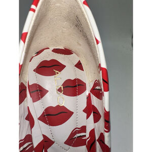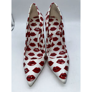 Aldo Stessy Lips Heels 8.5 White Red Print Pointed Toe Stiletto Pumps