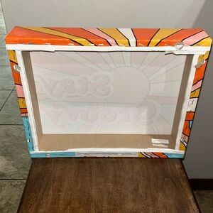 Colorful canvas art with 'Stay Groovy' text. Features vibrant sunburst design. In excellent used condition!