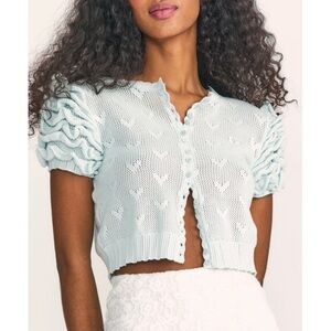 LoveShackFancy Preilla Crop Knit Cardigan New Large Mint Frost
