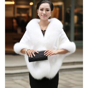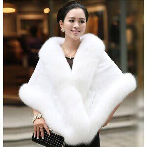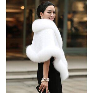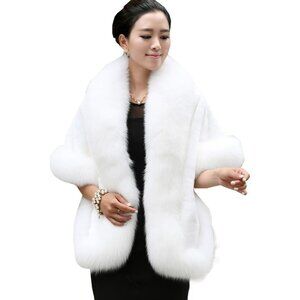 Women Luxury Faux Fur Coat Jackets Wrap Cape Shawl for Wedding Party