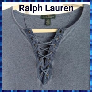Ralph Lauren Denim knit Sweater Lace-up Top Size Medium.