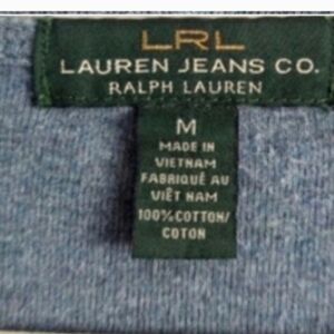 Women's LRL Ralph Lauren DENIM & SUPPLY 100% cotton lace-Up neckline blue knit op, Medium, LRL Jeans Co. Long Sleeve.