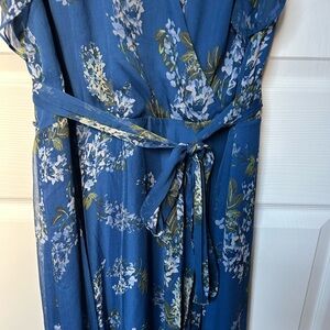 Vince Camuto Blue Floral V Neck Hi Low Fit and Flare Wrap Dress Size 24W