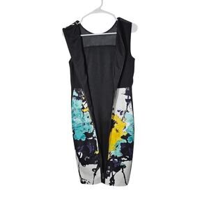 NWOT T Tahari Abstract Sleeveless Knee Length Bodycon Dress Size 2 XS Exposed back zipper. Fully Lined. No flaws. Some stretch.