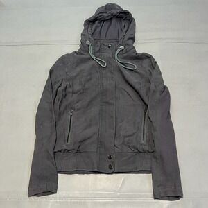 Brochu Walker Gray Trim Zip Up Hooded Mininal Earthtone Jacket Women-S-3092