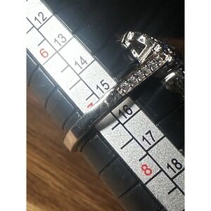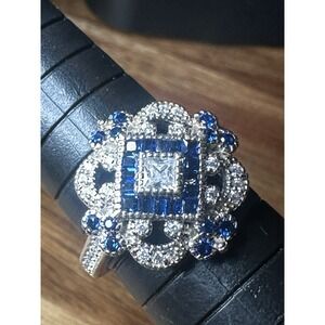 Art Deco Style Lab Created Diamond & Sapphire Sterling Silver Ring Sz 7