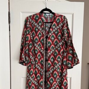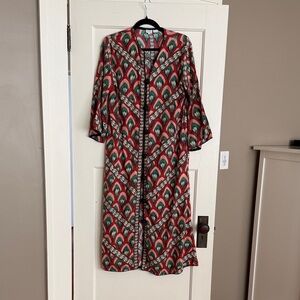 Vibrant floral pattern. Features red, green, and cream hues. Perfect for any occasion.