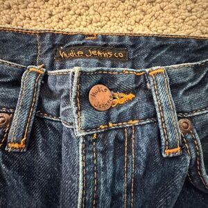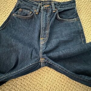 Excellent gently used condition. Nudie Jeans Breezy Britt style. High-waisted regular-fit jeans with a tapered leg. Made from 100% organic cotton. Size 26 x 26. Rise is approx. 11” and bottom leg opening 6”.