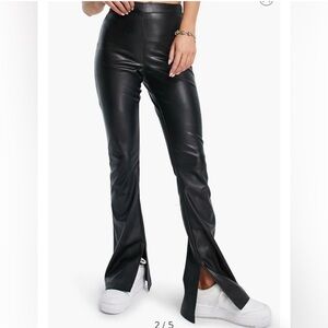 TOPSHOP Black Faux Leather Flare Pants Zipper Retro Goth Women’s Size 6 … BRAND NEW with tags … never worn from a smoke free home!!
