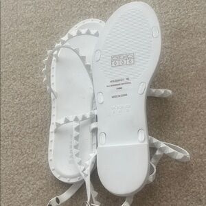 Chic white sandals with bold spikes. Perfect for summer outings.