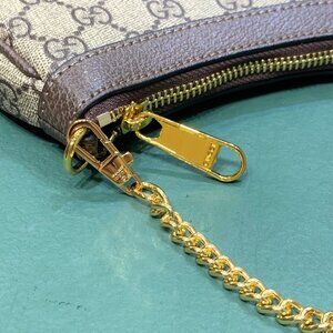 Chic mini bag with iconic Gucci design. Features a stylish gold chain strap. Perfect for any occasion.Fits up to iPhone Pro, card case, and lipstick