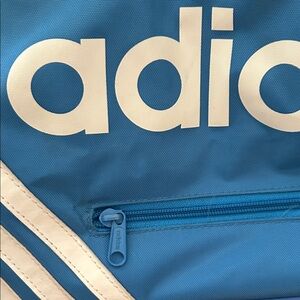 Used adidas Originals travel or sports bag in vibrant blue with white accents. Ideal 13.5 t x 17.5 l x 7.5 w