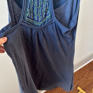 Purchased at Anthropologie. Such a fun spring and summer top. Longer fit. Looks really cute with blue or white jeans. Beautiful beading detail in perfect condition