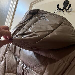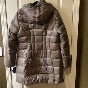 Chic and cozy puffer by Calvin Klein. Ideal for cold weather. Features a stylish quilted design.22” PTP and 33” shoulder to hem. 2 vertical zippered pockets in front. Collar zips all the way up to under your chin. Keeping that cold winter wind from going down inside the coat. Hooded. With adjustable straps to adjust the tightness of the hood. This is an adorable code. And will keep you very warm.onside pocket and thin vertical pocket by inside pocket that has a cover and a snap. Keeping things secure.