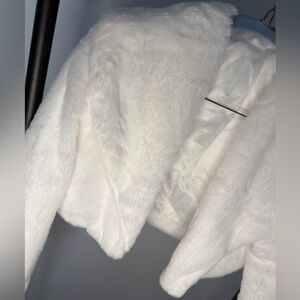 NWOT- Stay warm and stylish with this elegant white faux fur jacket. Perfect for any occasion, this jacket adds a touch of luxury to your wardrobe.