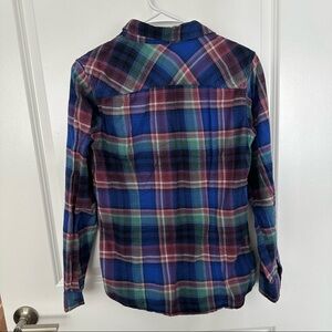 Women’s gentle used Eddie Bauer flannel button down shirt, size medium. Made with 100% cotton.