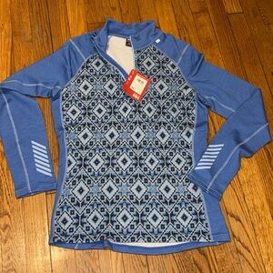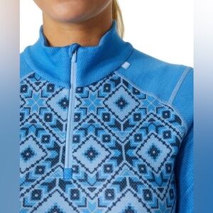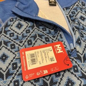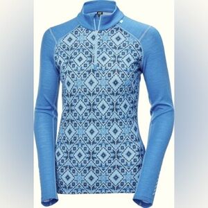 NWT Helly Hansen Lifa Merino 1/2 Zip ultra blue star pixel Base Top holiday L