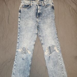 Avec Les Filles Size 28 Straight High Rise Split Hem Acid Wash Distressed Jeans