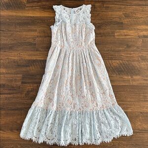 Pastel blue ruffle and lace dress