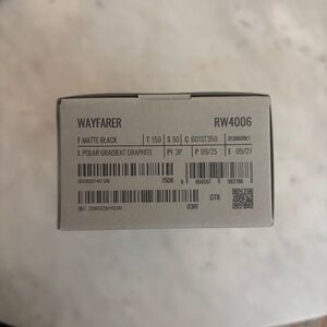 Sleek matte black Wayfarer sunglasses by Ray-Ban and meta. Timeless design for everyday wear. Brand new in sealed box.