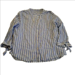 J. Crew Factory Women's Size XXL White Blue Stripe Tie Sleeve Button Up Shirt