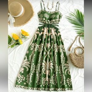 SHEIN Olive Green Tropical Maxi Skirt