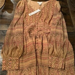 Chic long sleeve dress with a vibrant orange pattern. Perfect for stylish outings.