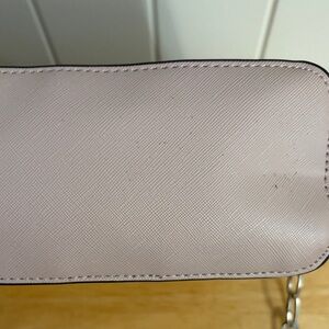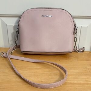 Elegant Steve Madden crossbody in light pink. Features a sleek silver chain strap and compact design. See photos for minimal wear marks.