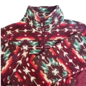 Women’s PacSun Fleece - Burgundy w/ Multicolor - 1/4 Zip - Size Small