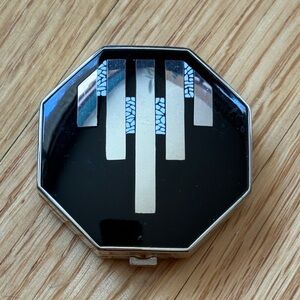 The other is from Dorset Fifth Avenue, square silver with squares pattern on top, and gold on bottom. Has powder puff and interior mirror. See photos for condition, shows some wear in outside.