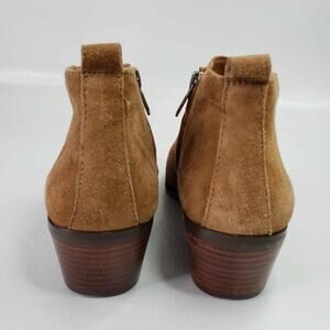 J.Crew Piper Ankle Boots Bootie Suede Brown Womens Size 7.5 Block Heel Side Zip