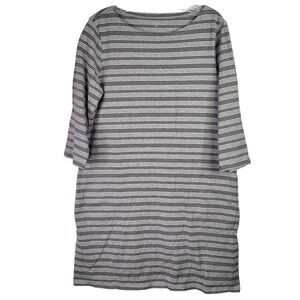 Garnet Hill Dress Women's Size 12 Gray Black Striped Pockets Organic Cotton