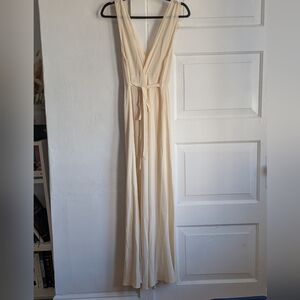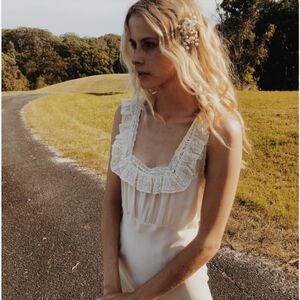 Gorgeous silk dress in nutmilk color. There's a few marks on the front and the top of one sleeve.