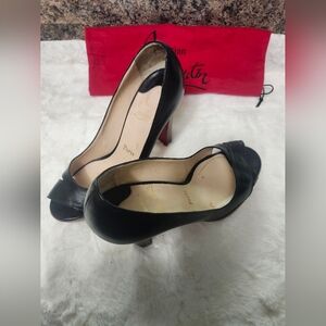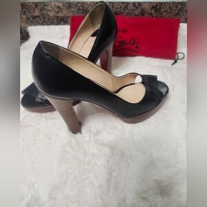 Step out in style with these elegant black peep toe heels from Christian Louboutin. Perfect for any occasion, these shoes offer both sophistication and comfort.
