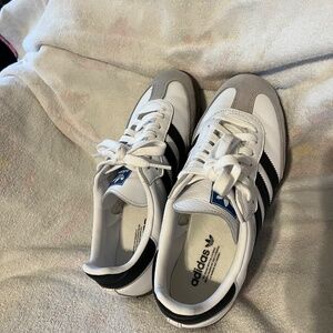 Adidas Women’s Samba size 7 Black and White with suede toe. Worn once. In like new condition.